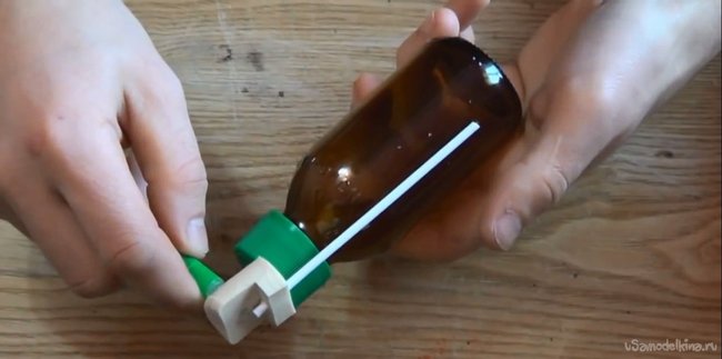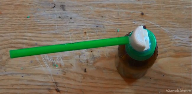 - Набрать краску и присоединить обрезанную трубку к баллону, который будет использоваться как пульверизатор.