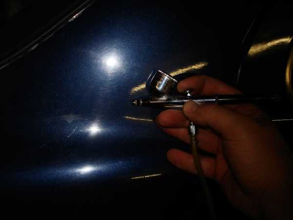 Беру аэрограф и стравливаю давление на элемент кузова,