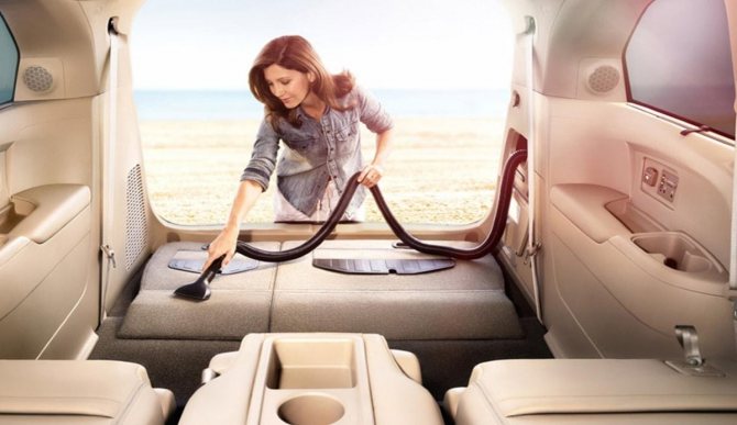 - пылесос, с помощью этого устройства можно будет удалить пыль и мусор из транспортного средства; особенным плюсом будет наличие моющей модели бытовой техники, поскольку это упростит процесс химчистка салона автомобиля своими руками;