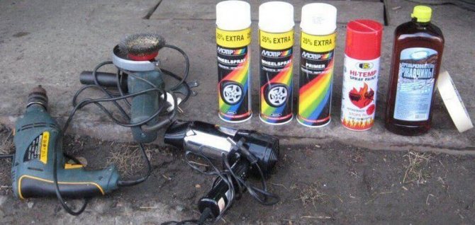 Итак, нужно снять шину и проверить целостность колесных дисков. Их очищают от старого красочного покрытия, используя щетку или электроинструмент. Труднодоступные места обрабатывают вручную с помощью наждачной бумаги, снимается локальная ржавчина и загрязнение. Затем изделия тщательно промывают водой, их поверхность обезжиривают с помощью растворителя. Сушить их после рекомендуется в сушильном шкафу, разогретом до 40°С.