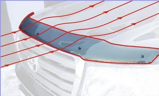 После установки между дефлектором и поверхностью машины образуется небольшое расстояние. Во время движения автомобиля этот зазор образует поток воздуха, который как раз и не даёт насекомым и грязи попасть на лобовое стекло «стального любимца». Будь это действительно так, мы бы не слышали всевозможных жалоб от автовладельцев по поводу различных царапин и коррозии, возникающих на поверхности машины под этой конструкцией, а также о всевозможных останках от убитых насекомых на лобовом стекле. Может быть, всё дело в подделках и некачественных деталях?