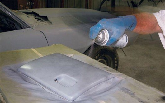 Работа аэрозоля начинается только после нанесения, высыхания и полировки грунтовки.