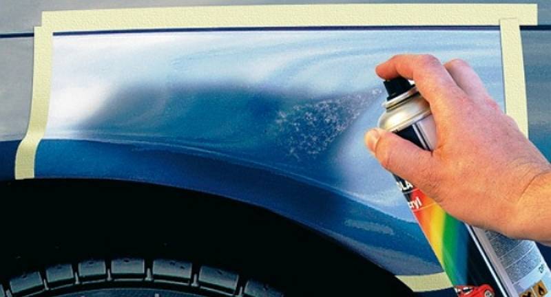 После того, как все царапины загрунтованы и зашлифованы, можно приступить к покраске авто баллончиком.