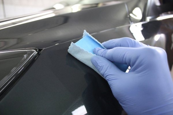 - Даже если кузов авто не подвергался воздействию маслянистых составов, рекомендуется «обезжирить» поверхность – так защитный лак, нанесенный на краску, будет легче подвергаться обработке.