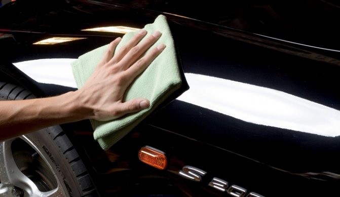 Как полировать машину после покраски? Полировальный состав наносят небольшими порциями на фланелевую салфетку, затем с ее помощью равномерно распределяют его по автомобильной краске, после чего оставляют подсыхать до консистенции белого налета.