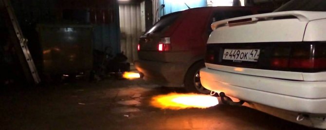 Можно сделать огонь из выхлопа стоковой машины без переделок, но получиться только на карбюраторном авто. К тому же, это опасно, т.к. может «разорвать» глушитель.