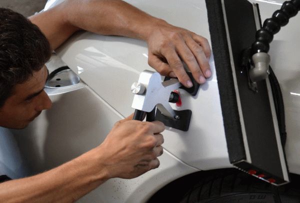 Удаление вмятин на автомобиле при помощи обратного молотка