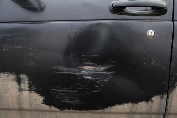 Если краска на месте крупного залома покрылась трещинами, и стала отваливаться, тогда, помимо устранения вмятины потребуется восстановить лакокрасочное покрытие. В противном случае, на части кузова, где возникло повреждение, образовываются очаги коррозии.
