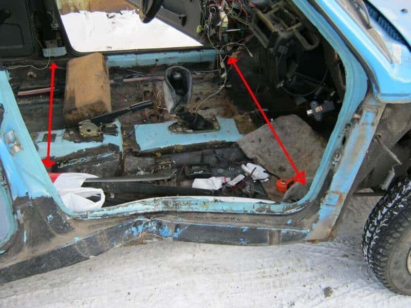 Выравнивание формы кузова при помощи домкратов должно происходить в несколько этапов: