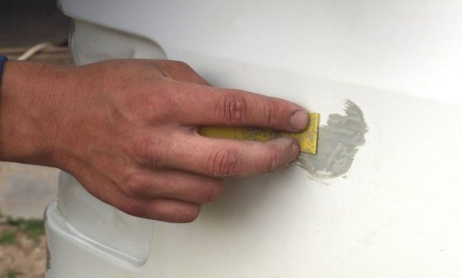 По характеру повреждений шпаклевка может быть для глубоких и для маленьких вмятин. В зависимости от этого она будет по-разному «садиться» на поверхность.