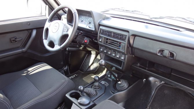 Основные изменения — немного переделали центральный тоннель. У Нива 4х4 теперь есть подстаканники и пепельница. Они сделаны в стиле современных автомобилей. Электрическая регулировка боковых зеркал — левого и правого, есть их подогрев, передние стеклоподъёмники, кондиционер, подогрев передних сидений. Неудобно, что включение кондиционера в одном месте, а его регулировка — в другом.