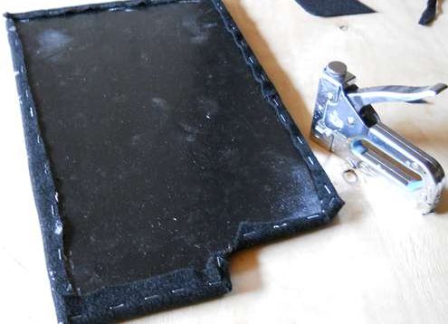 потом на эту Х-образную раму нашил с небольшим натягом предварительно подшитый по периметру (швейная машинка рулит:) кусок ткани. пришивать по всей длине диагоналей не нужно, достаточно по углам, близ защелок. вот и все.
