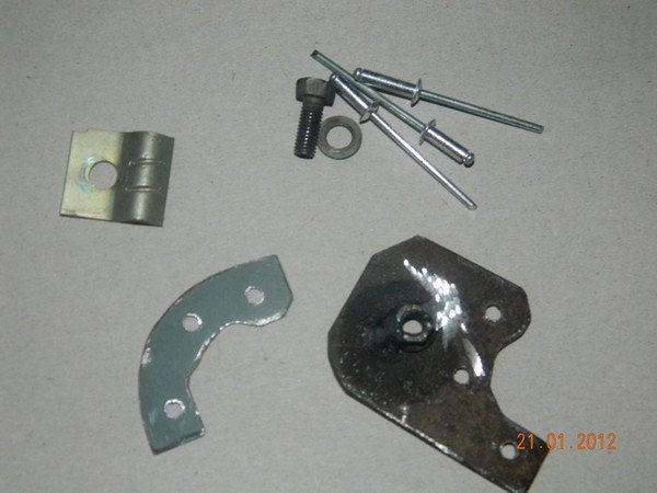 Оболочка троса должна фиксироваться на корпусе крана, там даже есть специальное место, но мне оно не подходит. Придумал сделать свой крепёж. Честно признаюсь, методом проб и ошибок, аж три раза придумывал крепление и всё с задействованием двух шпилек, но они отпали, так как требовалось больших манипуляций с металлом. Решение пришло как озарение — чем проще, тем надёжнее! Сделал шаблон из бумаги, а потом и из картона, который перенёс на металл и с помощью болгарина изваял крепление!