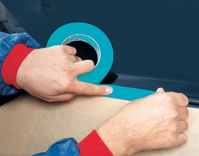 - Строительным скотчем обклеиваются места, не подлежащие окрашиванию, а после окончанию работ материал сразу удаляется.
