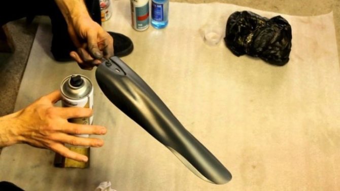 - Приступаем к покраске. Удобнее всего воспользоваться краской из баллончика, однако, если у вас есть немалый опыт, то вы можете использовать кисть. Процесс окрашивания потребует немало времени и терпения, потому что вам необходимо правильно подобрать цвет краски, а также расстояние для распыления. Лучше всего потренироваться на незаметной части детали, чтобы добиться полного совпадения цвета. Ждём, пока окрашиваемая деталь полностью просохнет.