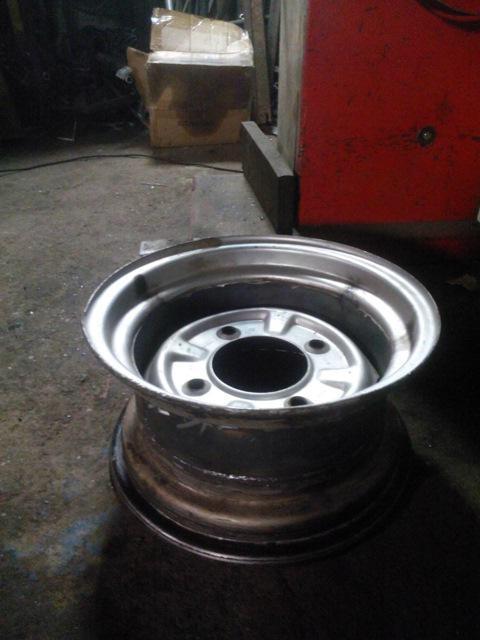 - увеличение размера колесного диска путем сварки двух половин от подходящих по размеру дисков.