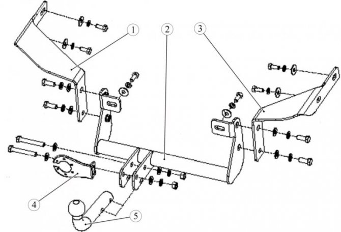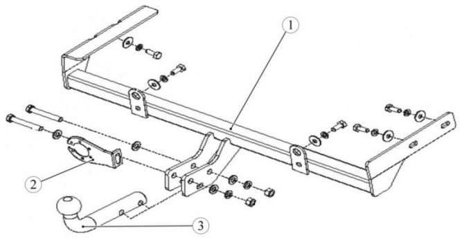 - Установка тягово-сцепного устройства с закреплением его на штатных местах;