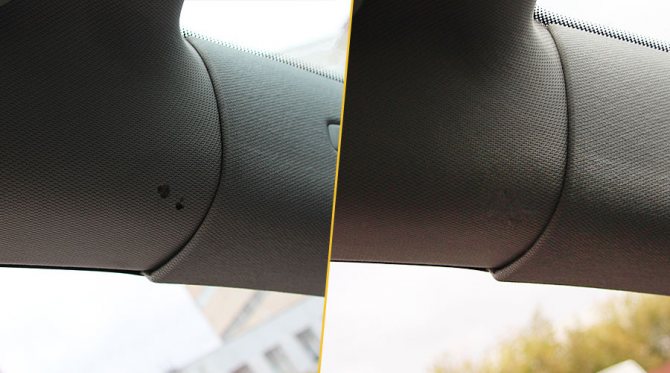 Случается и так, что водитель случайно прожёг сигаретой потолок в машине. И тут возникает закономерный вопрос о том, как исправить собственную ошибку. А исправлять её нужно с учётом того, какой конкретно материал применяется для обивки потолка. Если это ткань, то можно воспользоваться теми же советами, что предназначены для восстановления сидений.