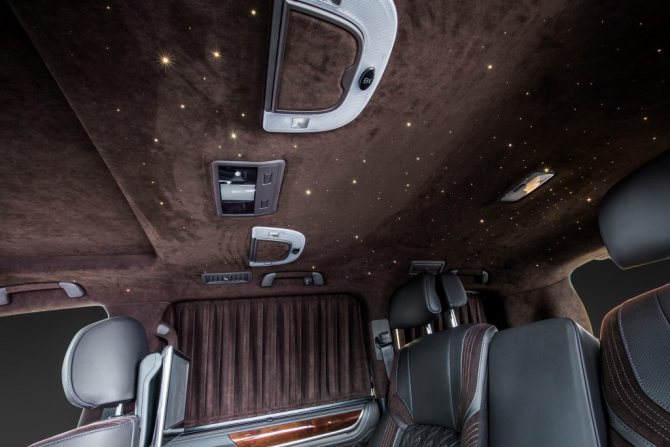 4. Ткань для потолка также — лично ваше дело, в магазинах имеется большой выбор различных вариантов. Лично я выбирал черную ткань с крупным зерном и выразительной структурой. Она имеет прекрасный вид и приятна на ощупь, к тому же на такой не останется пятен и прочих следов, которые остаются на белом велюре.