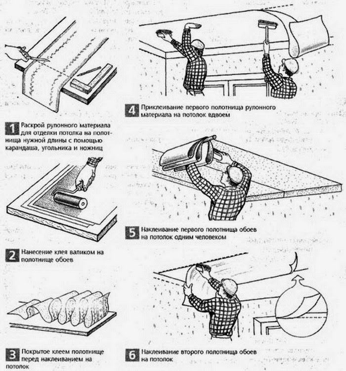 Для того, чтобы приклеить на потолок своими руками большинство рассмотренных материалов, достаточно клея, фена и кожаного валика. Лишь флок требует наличия средства для обезжиривания и флокатора.