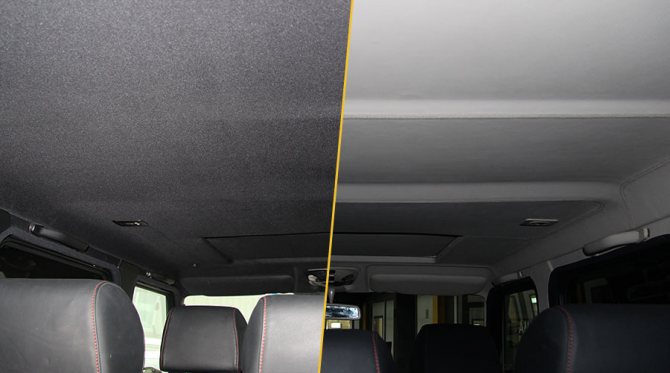 Если потолок в вашем автомобиле от времени или после чистки приобрёл неприятный цвет, не торопитесь его перетягивать. Возможно, вам поможет покраска.