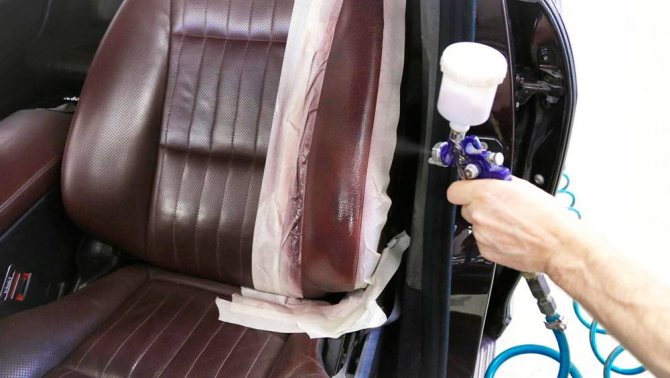 Краску можно выбрать аэрозольную, для замши или ткани, или водоэмульсионную, которая наносится губкой, валиком или кисточкой. Простую эмаль для авто применять нельзя, так как она не предназначена для покраски.