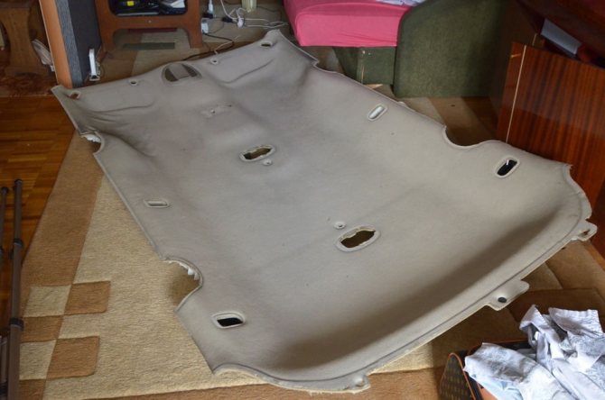1. Первым делом необходимо извлечь потолок из салона. В некоторых автомобилях для этого даже приходится вынимать лобовое стекло. Для меня этот вариант точно не подходит, поэтому я даже не думал об этом и попытался достать его так. Доставал его через заднюю дверь, предварительно вынув сидение пассажира, немного помучившись мне удалось его извлечь.