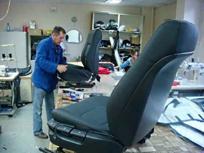 Такая процедура предполагает полную разборку всех элементов кресла, восстановление потертых составляющих, а также сборку сидения. Для того чтобы выполнить все необходимые работы, нужно подобрать подходящий материал для обивки. Выбор тут следует делать, отталкиваясь от особенностей интерьера вашего авто.