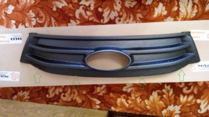 - Со штатной радиаторной решётки срезаем значок с логотипом.