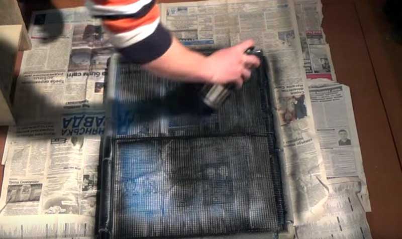 Обработать и украсить поверхность решетки можно по-разному. Прежде всего, нужно подчеркнуть, что покраска сетки осуществляется еще до закрепления на рамке, если эти два элемента планируется оформить в различных цветах. Однотонные решения можно воплощать уже после полной сборки деталей. Не стоит забывать и о грунте. Желательно, чтобы марка грунта и краски была одной и той же. Многие практикуют обтяжку рамки декоративной пленкой, например под карбон или хамелеон. Такие операции также следует проводить до соединения рамки с сеткой. Ничего сложного в оклейке пленкой тоже нет. Для этого понадобится предварительно очистить и обезжирить поверхность, после чего, при помощи фена, а также гибкого ракеля, нанести и старательно разгладить пленку.