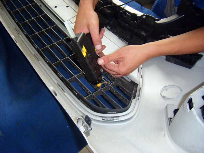 - Вымойте и просушите автомобиль. Если в бампере установлены противотуманные фары, то перед работой отсоедините отрицательную клемму аккумулятора.