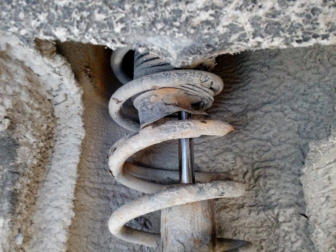 Если ломается одна из пружин, в подвеске появляется стук, а машина проседает в том месте, где пружинный виток лопнул.