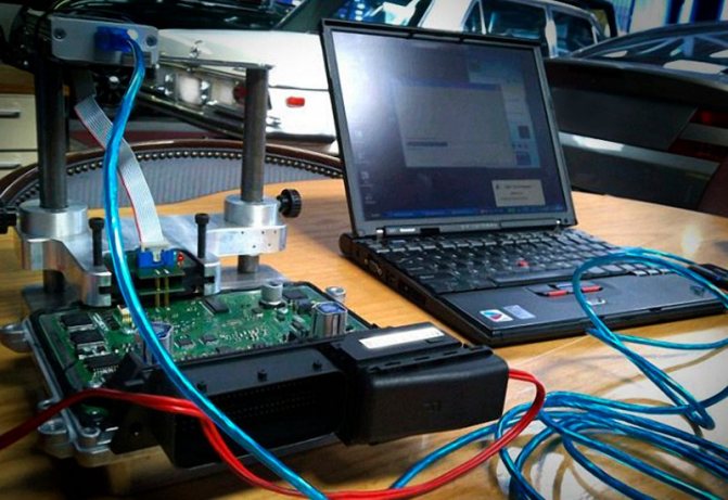двигателя, преднамеренно обеднена, хотя мотор изначально проектировался для работы с более обогащенной смесью. Но по настоянию экологов подача бензина к форсункам была сокращена. Чтобы внести изменения в существующие параметры работы двигателя необходимо подключить адаптер компьютера или ноутбука к диагностическому разъему машины. Разумеется, что на компьютере должны быть инсталлированы соответствующие приложения.