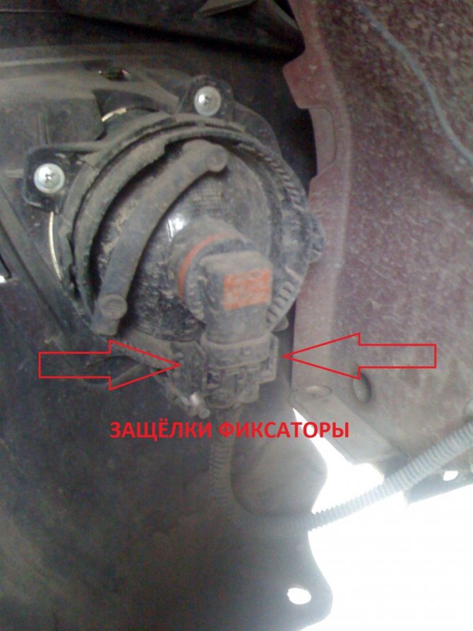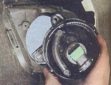 2). Поворачиваем патрон против часовой стрелки и извлекаем его и фары.