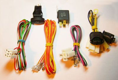 - Комплектация покупных фар должна иметь все необходимые элементы для правильного подключения (проводку, клеммные колодки, кнопку включения, плавкий предохранитель и реле).