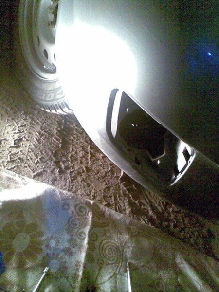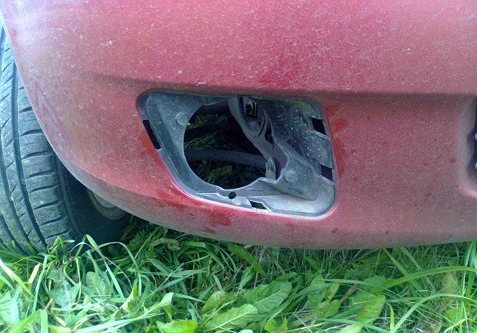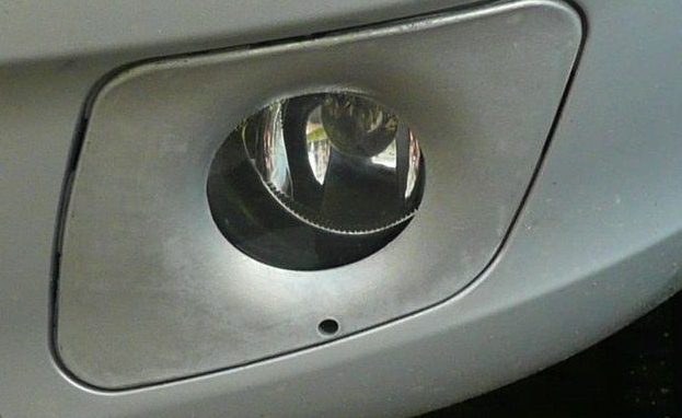 - Затем при помощи отвертки с плоским лезвием вам нужно будет отогнуть фиксаторы и извлечь из посадочных мест заглушки. Затем возьмите купленные противотуманки и зафиксируйте каждую из них при помощи трех саморезов. Проследите за тем, чтобы оптика была надежно установлена в месте монтажа – она не должна подвергаться вибрациям в процессе езды, поскольку это спровоцирует ее ускоренный выход из строя.