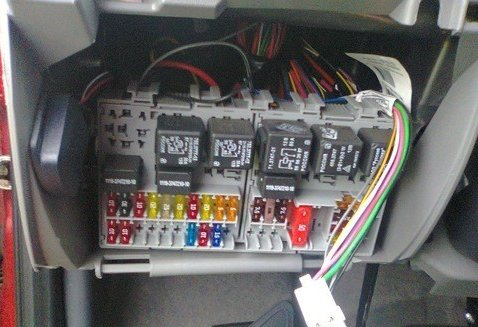 Менее популярный метод — подключение ПТФ к модулю управления светом (МУС). Реле закрепляем навесным креплением в монтажном блоке.