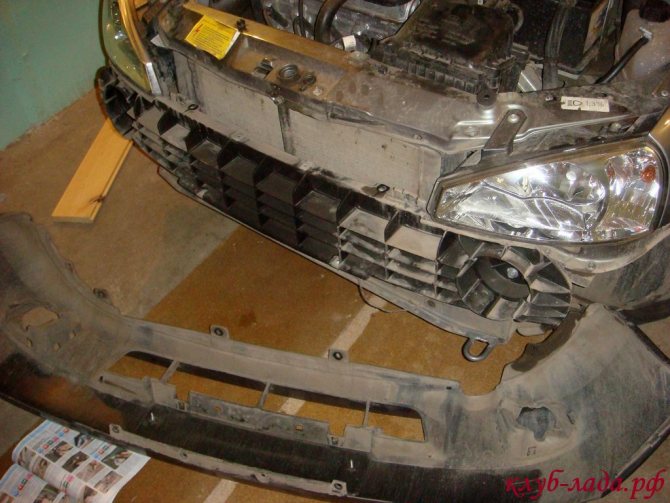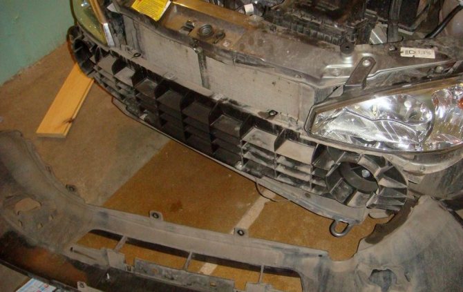 - Снять бампер, не поцарапав уголки крыльев и фары.