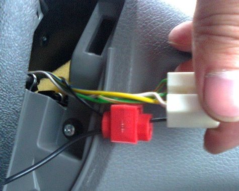 Подключение ПТФ в штатную проводку не занимает много времени. Для поиска косы следует осмотреть район лонжерона в месте входа основного пучка. Штекер для ПТФ примотан к проводам изолентой.