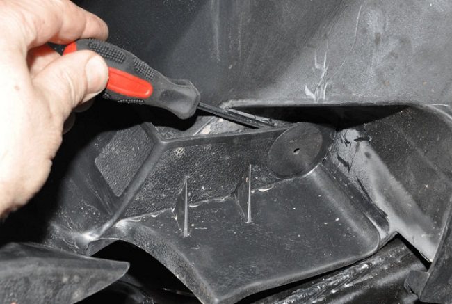 - Отщелкнуть все клипсы по контуру бампера и выкрутить саморезы.