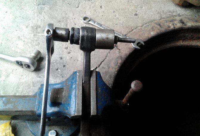 Закрепляем конструкцию в тисках и выпрессовываем старый сайлент-блок.